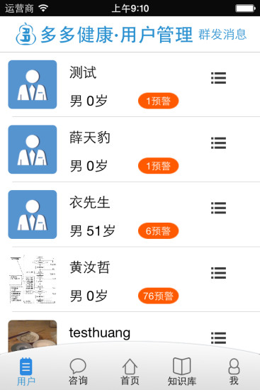 多多健康医生版是为医生量身定制, 医生用户能够进行用户授权,对授权用户进行健康数据分析和诊断,以及轨迹跟踪和病例查看,还能在线回答用户提出的咨询,和用户进行一对一交流。