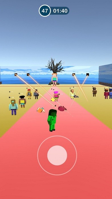 1、进入游戏后置身于像素庭院,当屏幕上方的守卫背影转向墙壁时,快速点击屏幕操控倒霉蛋向前移动,首次尝试需掌握“移动-静止”的节奏切换。