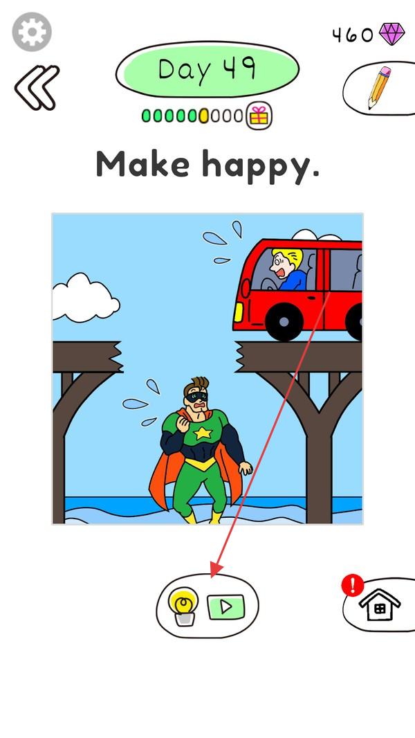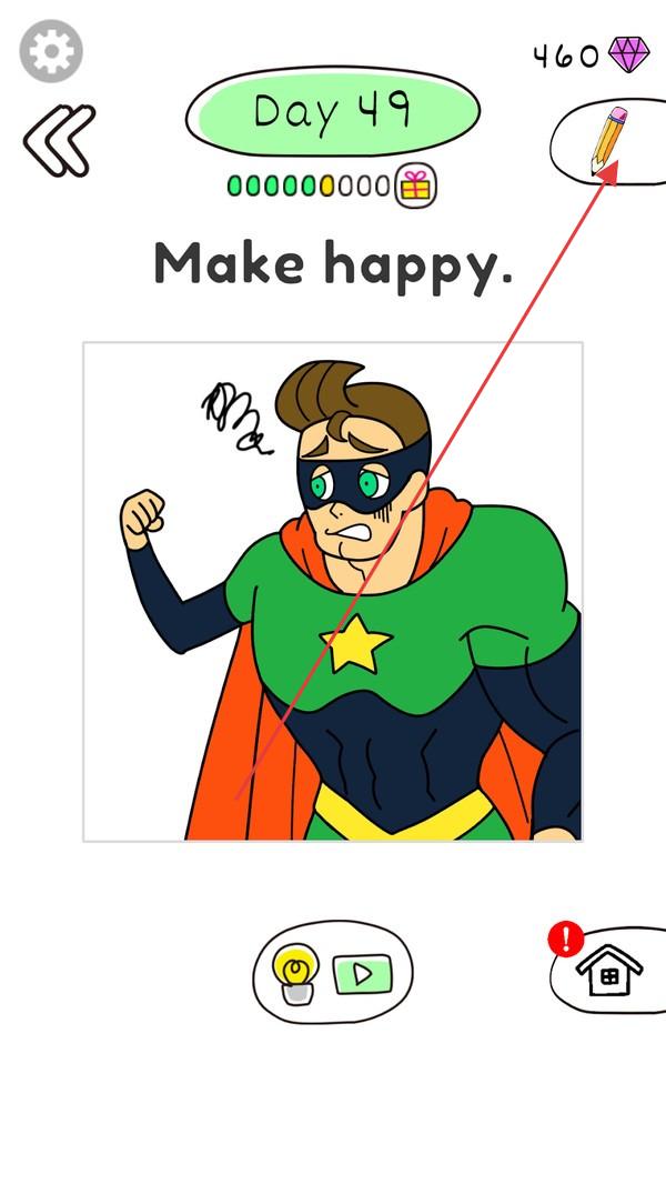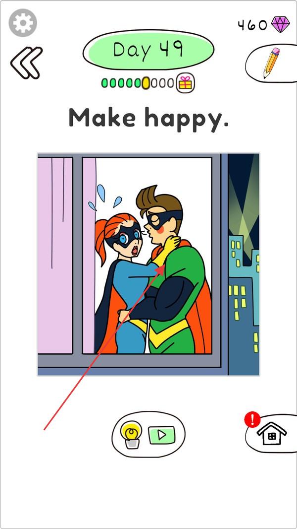 1、进入Day49关卡,明确“Makehappy”目标,观察超人及场景初始状况。