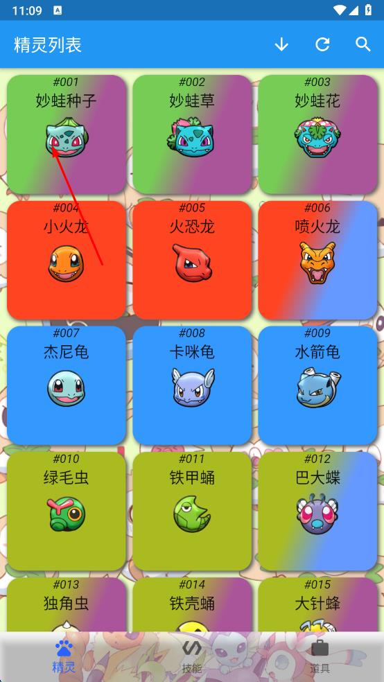 1、下载安装完成后,打开游戏,映入眼帘的便是条理清晰的主界面,点击“图鉴”选项,即可进入精灵查询页面,通过搜索栏输入宝可梦名字,或按属性、世代等分类筛选。