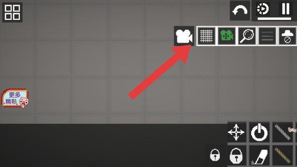 3、红色箭头所指图标形似相机,是场景内的截图或录制功能按钮,用于记录画面或操作过程,画面中还有其他功能按钮,可能用于地图编辑、场景切换等操作。