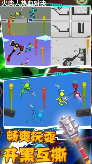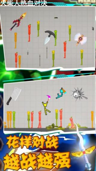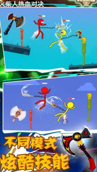 1、动作格斗核心:以动作格斗为核心的玩法,玩家操控火柴人施展拳脚、武器技能等招式,与对手展开了激烈对抗。
