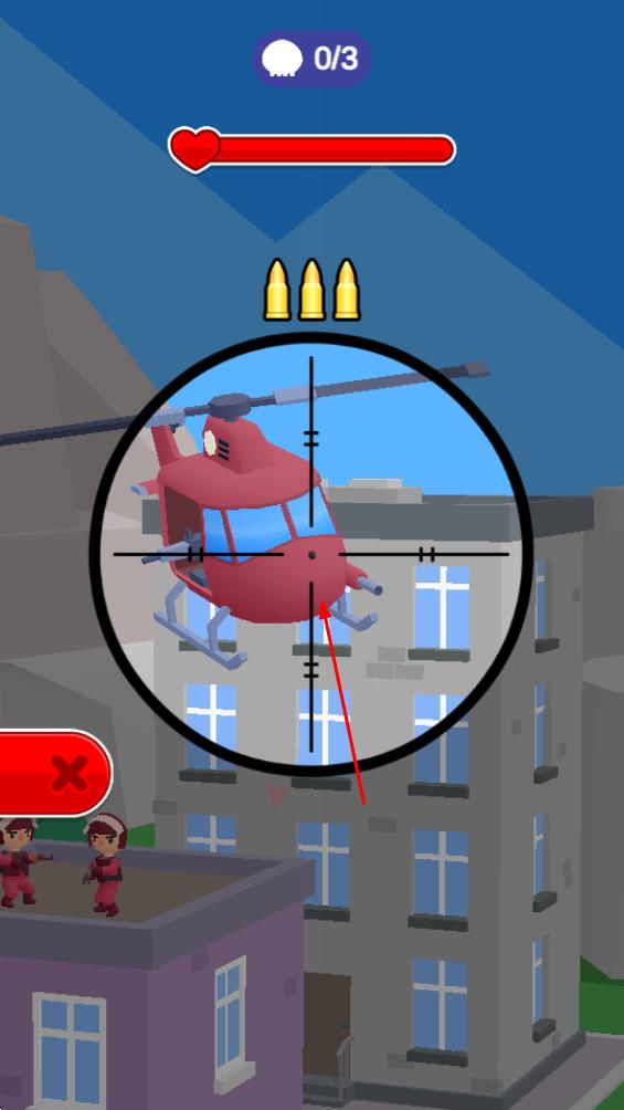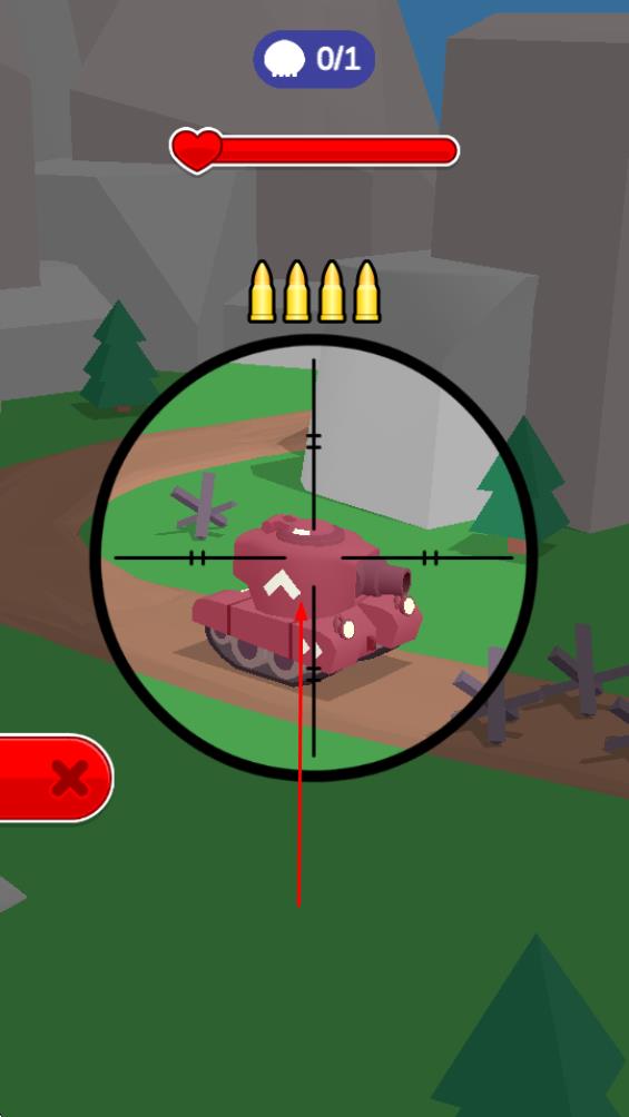 1、进入狙击模式,瞄准敌方坦克/直升机,点击射击,消耗子弹(4发/3发),摧毁目标。