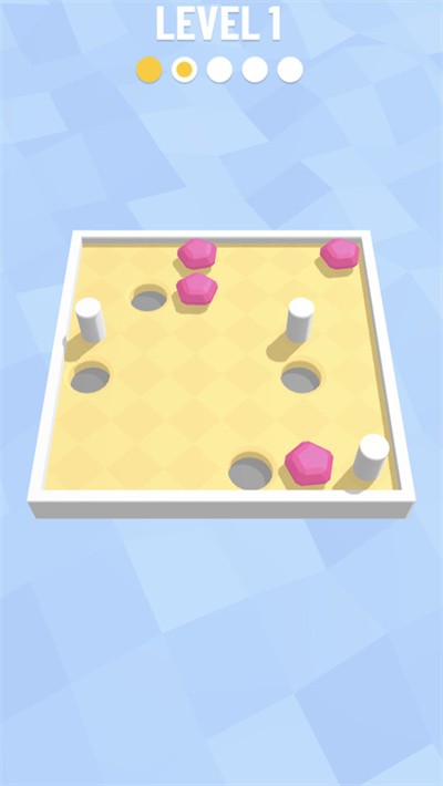 3、当所有宝石成功落入洞内即完成通关,后续关卡会新增旋转平台、弹力挡板等复杂元素,需更精准把控摇晃时机,在限定时间内完成宝石入洞挑战。
