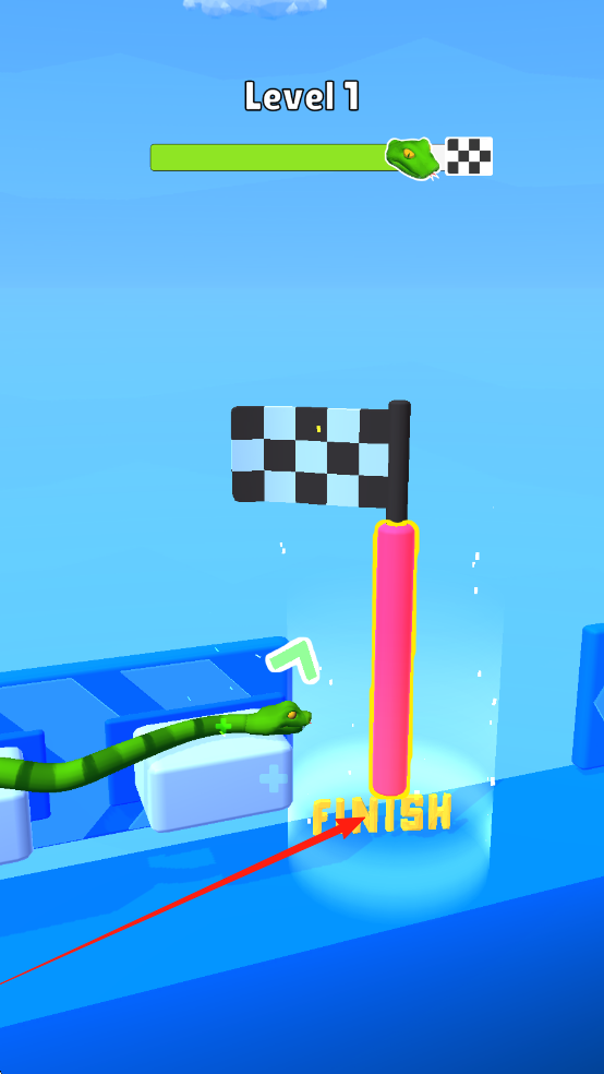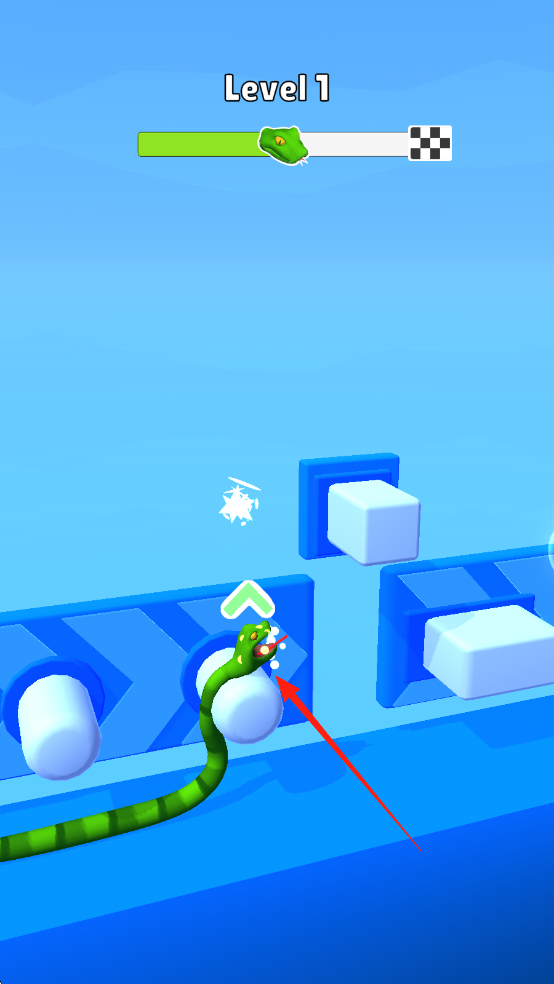 2、吞噬食物闯关升级:在关卡中引导蛇蛇吞噬地图食物,不断成长壮大,完成关卡目标后点击下一关,收集奖励,逐步解锁更多难度的挑战与丰富内容。