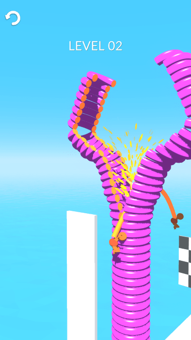 双人切割跑酷是一款主打双人协作的创意跑酷作品,玩家将操控两个被绳索连接的角色在充满障碍的赛道上奔跑,通过切割绳索、同步动作来克服陷阱,采用3D卡通画风构建奇幻赛道,从熔岩峡谷到机械工厂等场景中,分布着需要双人配合通过的旋转刀片、伸缩平台等障碍,玩家需在奔跑中实时切割或连接绳索,调整两人位置躲避危险。