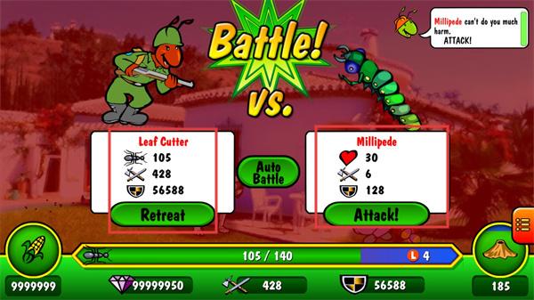 2、策略战争系统:设计敌人入侵与资源争夺等战争场景,需根据四种蚂蚁的特性(如工蚁采集、兵蚁攻击)制定战术,升级技能强化战力。