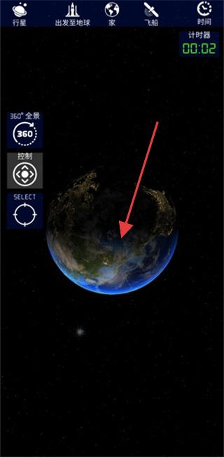 3、在太空观测界面,使用【360°全景】等功能,切换视角观察星球,借助计时器等工具,把控探索时间与节奏。
