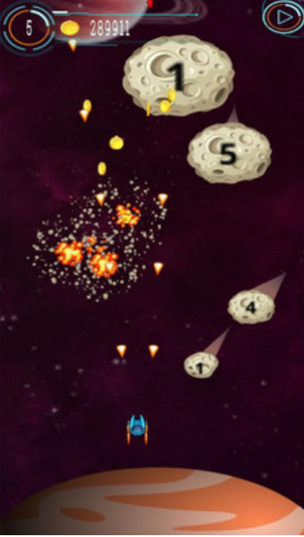 1、驾战机碎行星:核心操作是驾驶战机在太空穿梭,通过滑动触摸操控方向,瞄准坠落的行星进行射击击碎,需精准判断行星轨迹,确保在其落地前摧毁,考验反应与瞄准能力。