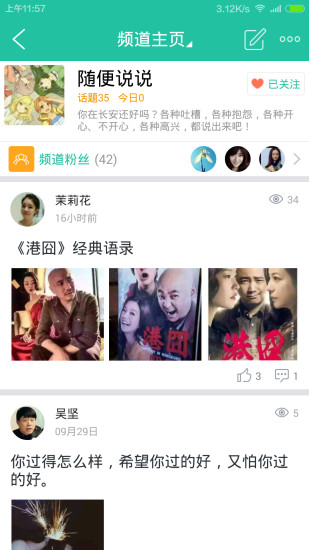 用户关注频道后,可以查看通知、留言、提问,与工作人员互动等操作。