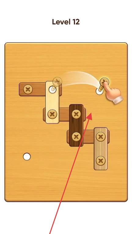 2、螺丝安装关卡挑战:操控螺丝旋转移动至指定位置,完成安装后点击下一关收集奖励,关卡难度循序渐进,从基础形状到复杂组合,持续提升解谜挑战性。