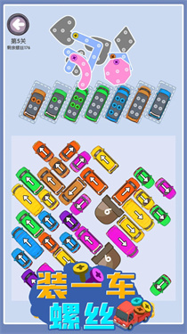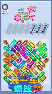 3、机制独特策略性强:每个螺丝都有独特的放置机制,玩家需掌握车辆驾驶技巧与螺丝安装逻辑,在策略规划中完成挑战,体验益智玩法的深度与趣味性。