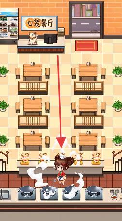 1、进入游戏,在初始餐厅场景,操控角色烹饪,满足顾客需求,积累金币。