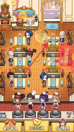3、解锁“自动服务”功能,优化运营,招待不同顾客,推进餐厅经营进程。