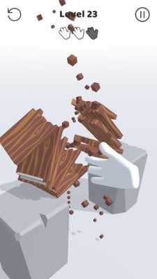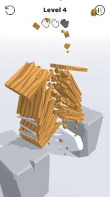 1、极简画风与刺激反馈:采用简单明快的画风,聚焦劈柴核心体验,空手劈下时,木头飞溅的粒子效果与碎裂音效同步触发,视觉与听觉双重刺激叠加,强化操作的爽快感。
