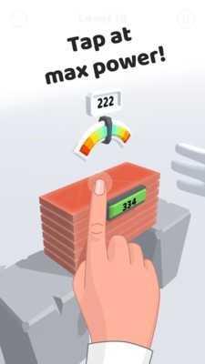 3、无按钮的极简交互:画面简洁无多余按钮,所有操作集中于屏幕按压——通过力度指示器直观显示当前力道,玩家可精准调整发力时机(如蓄力至合适力度再劈下)。