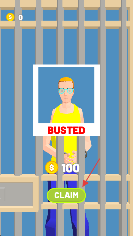 3、成功抓捕罪犯出现【BUSTED】提示后,点击【CLAIM】按钮领取奖励,继续后续挑战。