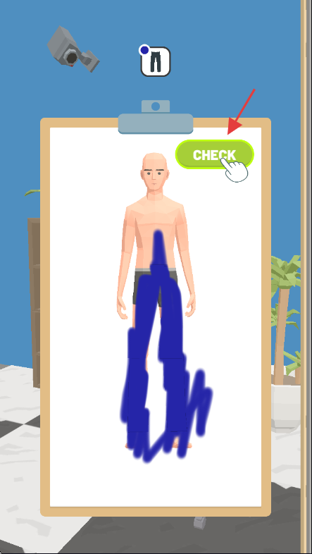 2、在绘制界面完成罪犯形象拼凑后,点击【CHECK】按钮,确认当前绘制内容是否符合要求。