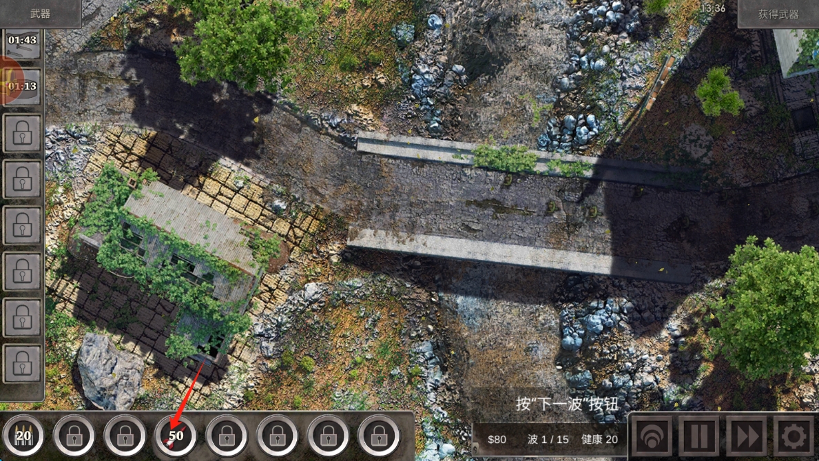 1、点击开始游戏,利用连续成功防守触发"战术升级"状态,通过战斗回放分析改进炮塔布局。