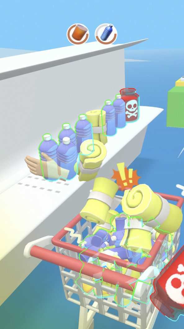 2、眼疾手快的危险规避:时刻留意场景中的危险品(如标有“易碎”“过期”标识的商品),一旦发现需迅速滑动屏幕操控角色避开,同时保持采购节奏,在“躲避危险”与“收集商品”。