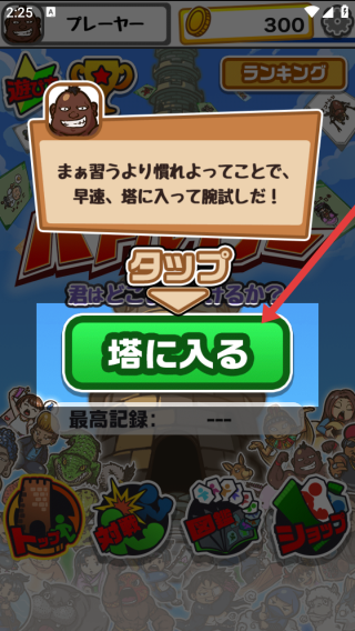 2、根据系统的指引,操控者需要点击绿色的按钮【塔に入る】,进入战斗塔,正式开启游戏挑战环节。