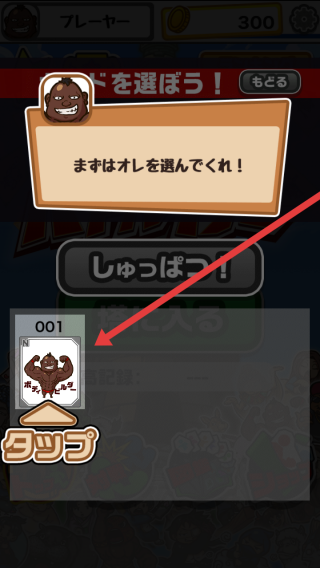 3、需要按提示来进行选择角色“ボディビルダー”(卡片标识001),完成角色选定,推进游戏流程。
