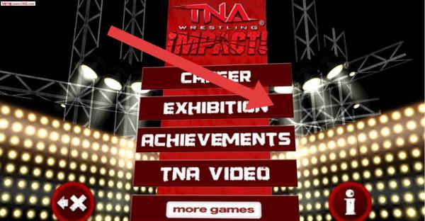 1、进入游戏主界面(第一张图),选择【EXHIBITION】模式(红色箭头指向),此为Exhibition模式。