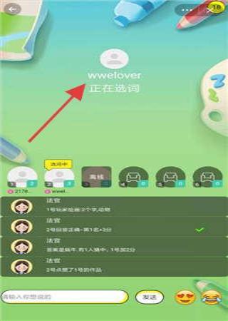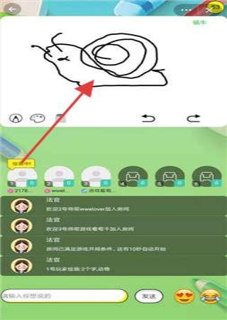 3、绘图操作流程:当轮到自己画图时,玩家可根据系统提示,灵活选择画笔工具进行创作,巧妙构思画作,引导其他玩家猜测最终答案。