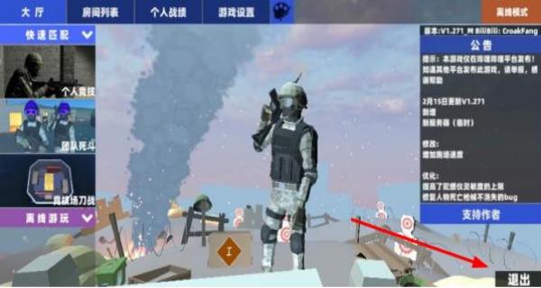 1、进入游戏后在主界面选择对战模式,滑动屏幕调整视角,通过虚拟按键操控移动、射击与跳跃,熟悉基础战斗操作。