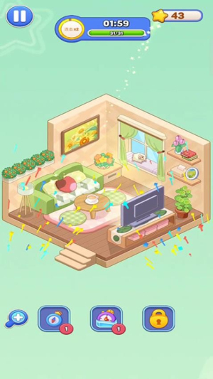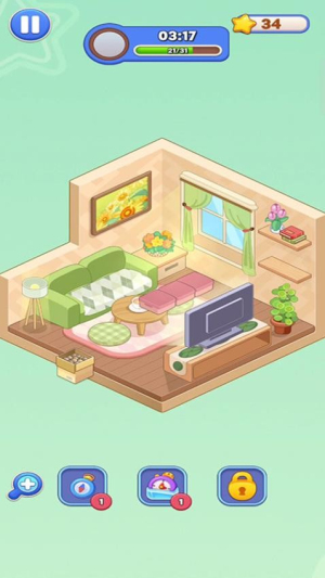 2、动态关卡目标系统,每个任务会随机生成3-5种装修要求,例如"提升空间采光度"或"打造儿童安全区域",玩家需灵活运用道具完成复合型挑战。