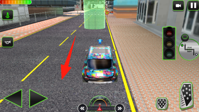 3、道路驾驶时,通过【箭头】指向的转向按键,控制车辆行驶方向,遵守交规,抵达终点。