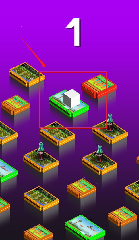 2、看到红框圈出的白色立方体方块,用手指点这个方块,就能选中这个特殊游戏机方块开始挑战任务啦。