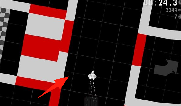 1、赛道行驶时,操控飞船状赛车,沿【箭头】方向,避开红白色障碍,前行。