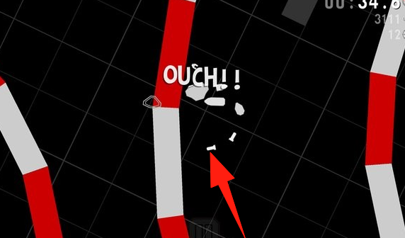 3、若操作失误,碰到障碍,出现“OUCH!!”,重新开始,调整路线,避免碰撞。
