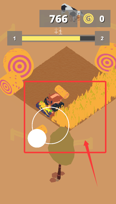 2、通过虚拟摇杆控制收割机移动,将成熟的小麦全部收割干净。