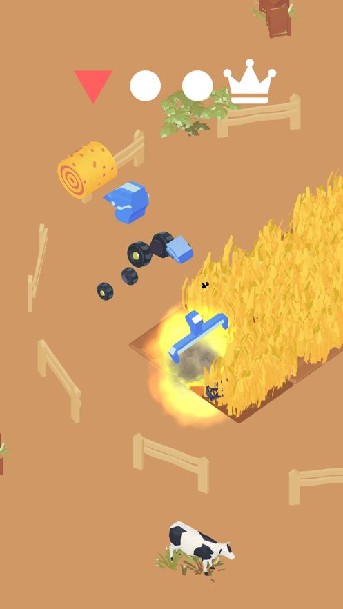 3、关卡设计循序渐进,从简单的小块麦田到复杂的障碍地图,特殊挑战关卡会引入时间限制或特殊地形,考验操作技巧。