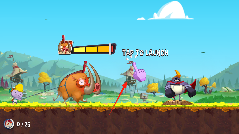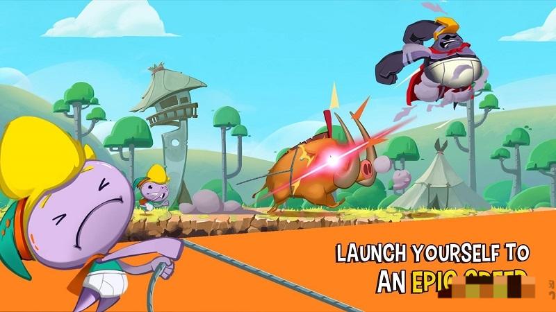 3、依据“TAP TO LAUNCH”提示点击,操控角色利用野兽弹射,在关卡中推进战斗。