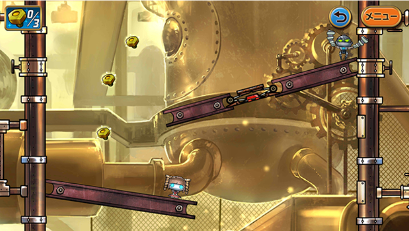 2、收集要素增添探索乐趣,每关散落着齿轮零件与金螺丝。集齐特定数量可解锁隐藏关卡和特殊外观,满足收集爱好者的需求。