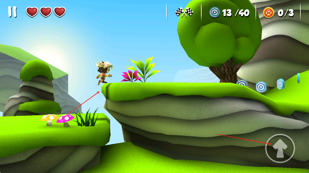 1、进入游戏后通过点击屏幕控制小女孩跳跃,长按可实现高跳,滑动屏幕向下翻滚躲避低矮障碍,如突然窜出的荆棘丛。
