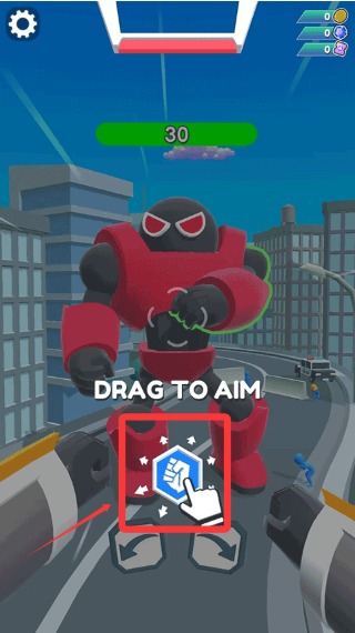 2、箭头图标用于阻挡敌人进攻,点击左箭头机器人抬左手,点击右箭头抬右手。