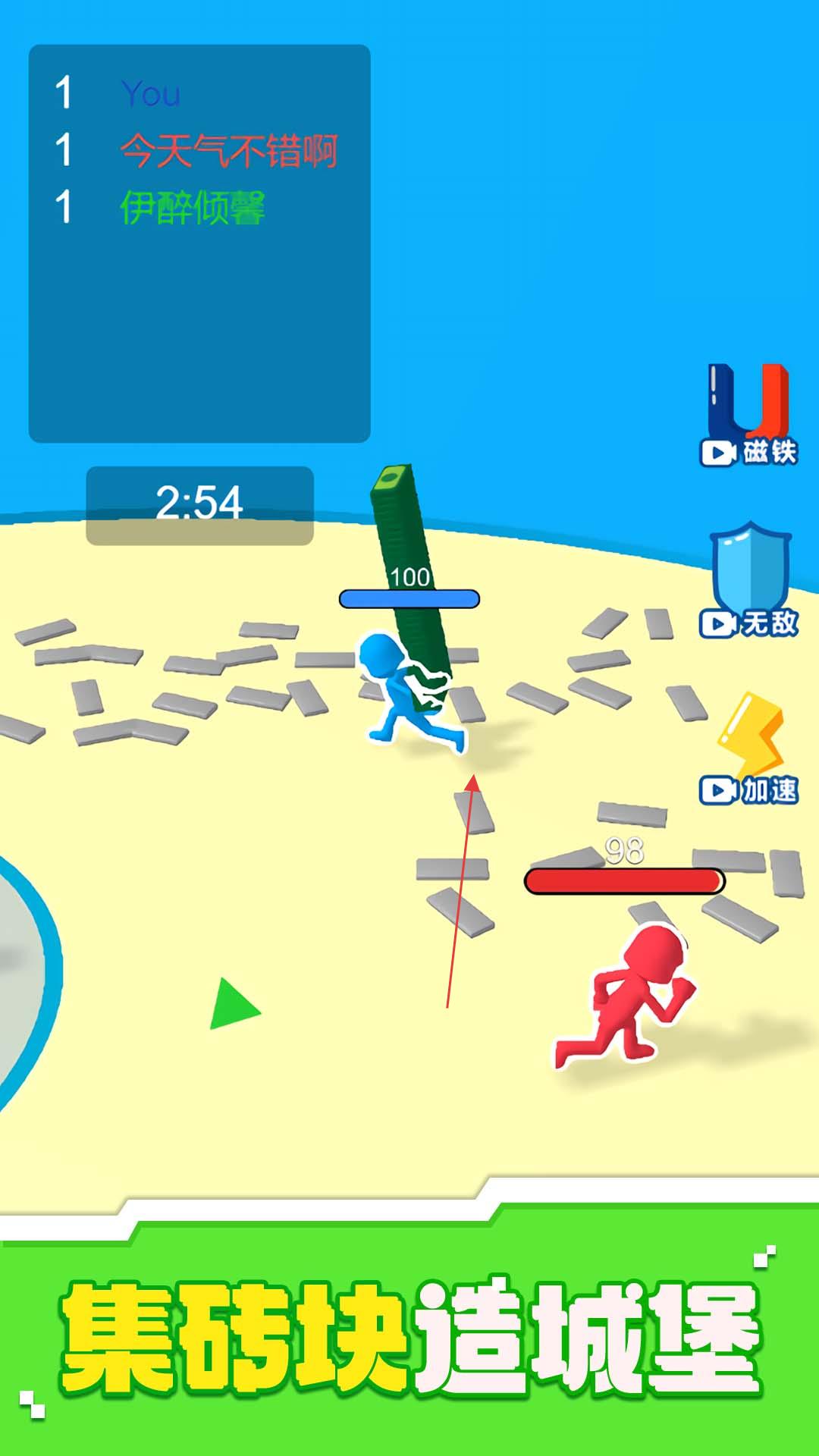 3、在地图中收集砖块,搬运回己方区域,用于建造、升级城堡,为战斗和发展筑牢基础,持续壮大势力。