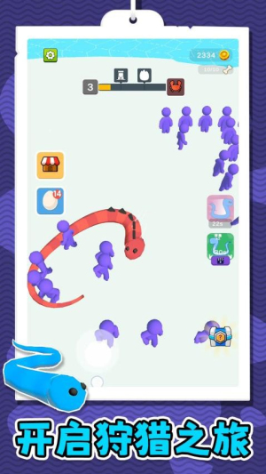 超级猎手3带来魔性十足的吞噬体验,操控灵巧小蛇展开围捕行动。通过不断吞食目标提升体型与速度,解锁多种炫酷皮肤改变外观。每局游戏随机生成挑战地图,考验走位技巧与策略规划。收集金币强化核心属性,打造专属强力蛇蛇。简单易上手的操作配合快节奏玩法,随时随地享受成长乐趣。