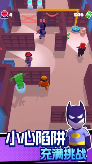 2、动态守卫AI系统,敌人会根据异常迹象展开搜查。打翻物品会吸引注意,未及时处理的昏迷守卫会触发警报,考验玩家的现场应变能力。