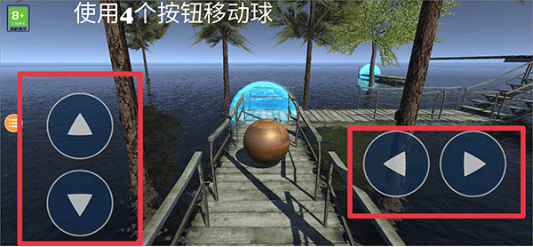 2、开始游戏后使用屏幕中上下,左右四个按钮来移动球。