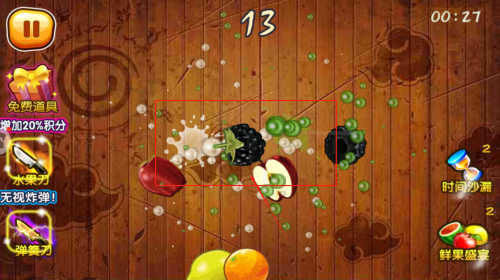 3、使用手指在触屏上划动,实现各种水果的切割与消除操作。