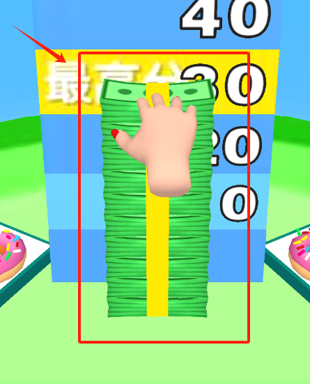 3、看到手抓绿钞票和分数显示,点屏幕左右两侧控制手移动,抓到更多钞票提高得分哦。