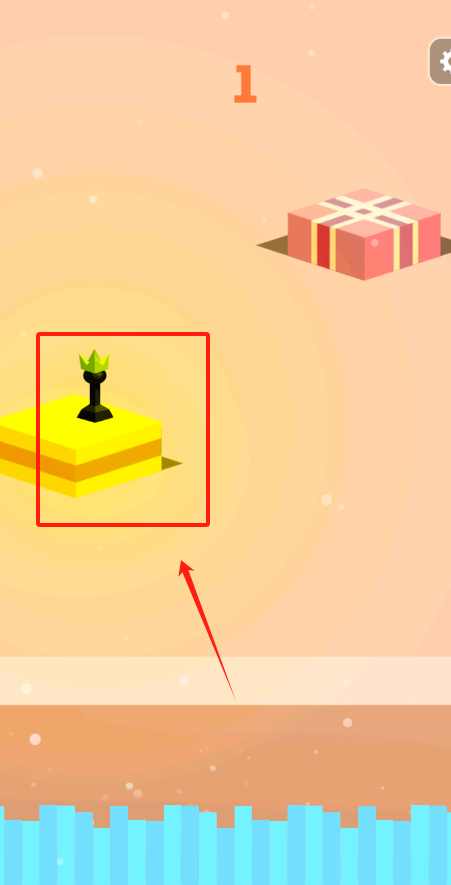 2、瞧黄色方块上的绿叶黑杆物体,用手指点击这个被红框标出的道具,准备弹跳挑战。