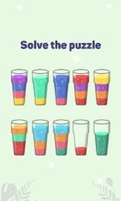 1、运用配色解难题:玩家需要通过配色技巧解决各类逻辑难题,根据液体颜色的差异与关联,合理规划调换顺序,完成相同颜色的归类。