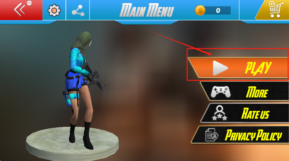 1、主界面点PLAY开始游戏,MORE看更多内容,RATE US给游戏评分。