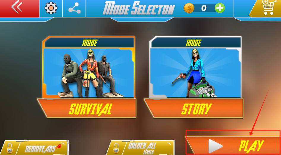2、选生存或故事模式,点PLAY开玩,想解锁关卡就点UNLOCK ALL。